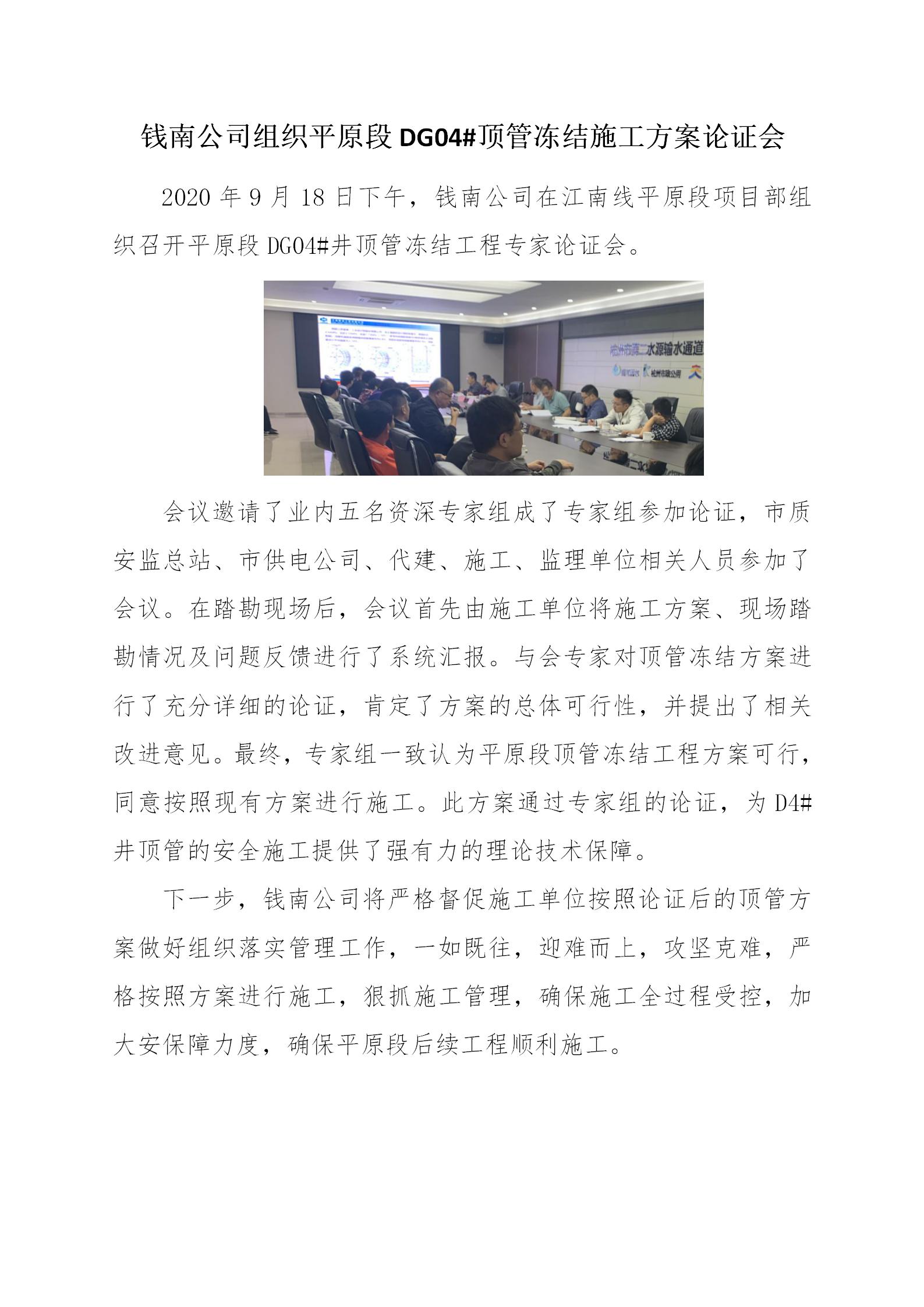 钱南公司组织平原段DG04#顶管冻结施工计划论证会