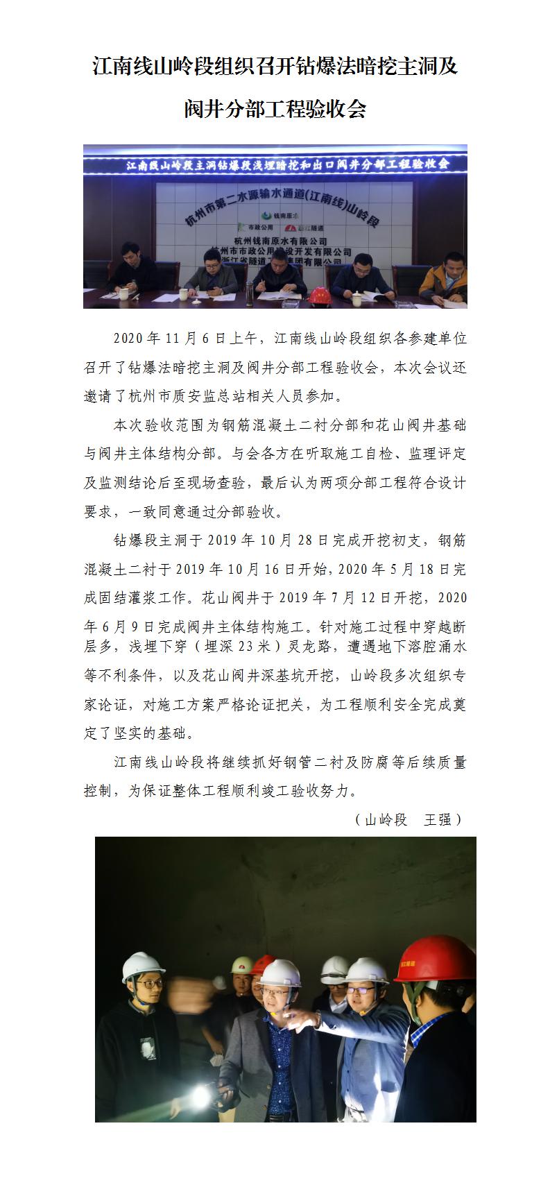 江南线山岭段组织召开钻爆法暗挖主洞及阀井分部工程验收会