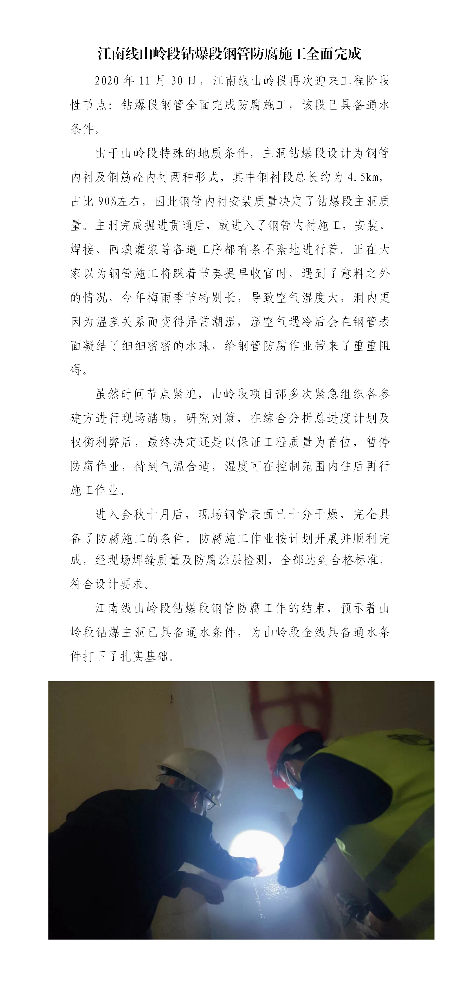 江南线山岭段钻爆段钢管防腐施工完成