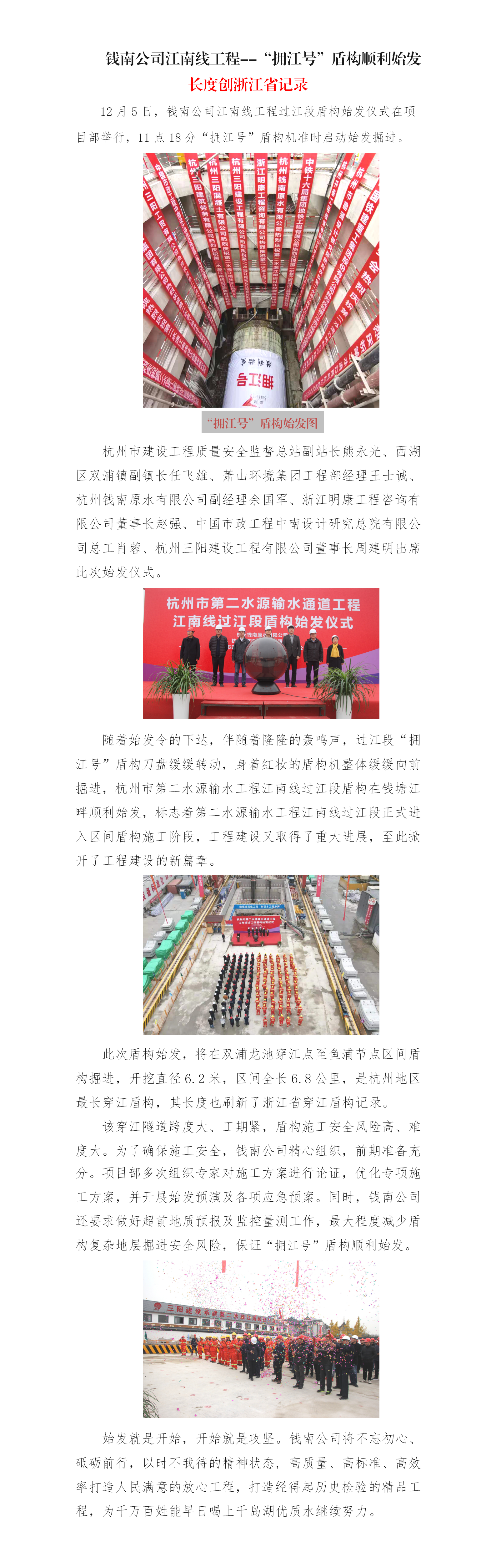 钱南公司江南线工程--“拥江号”盾构顺遂始发长度创浙江省纪录