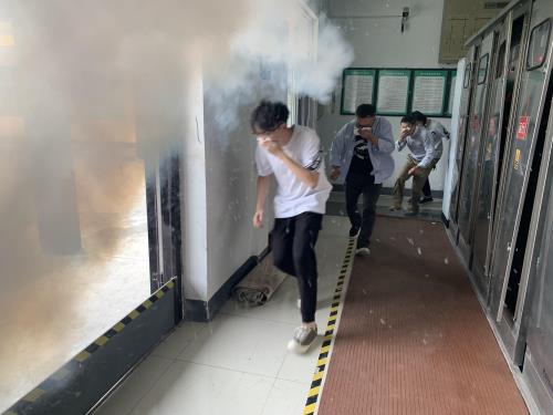 本次参演职员以泵站一线操作工为主。团结泵站运行情形,演练分为三个阶段开展,第一阶段为电器装备防火检查,指导参演职员检查辨识控制柜内易发热起火元器件 ;第二阶段为电器装备起火杀绝演练,指导参演职员熟练掌握二氧化碳及干粉灭火器使用技巧 ;第三阶段模拟火势过大,参演职员围绕“火灾逃生四要点”睁开逃生自救演练。